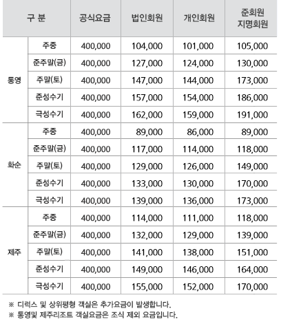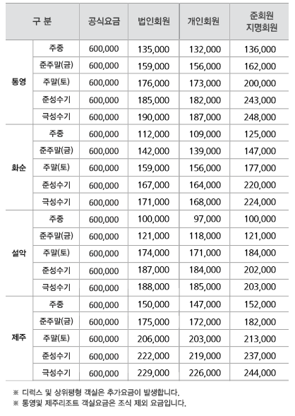 ◆ 금호리조트 객실요금안내