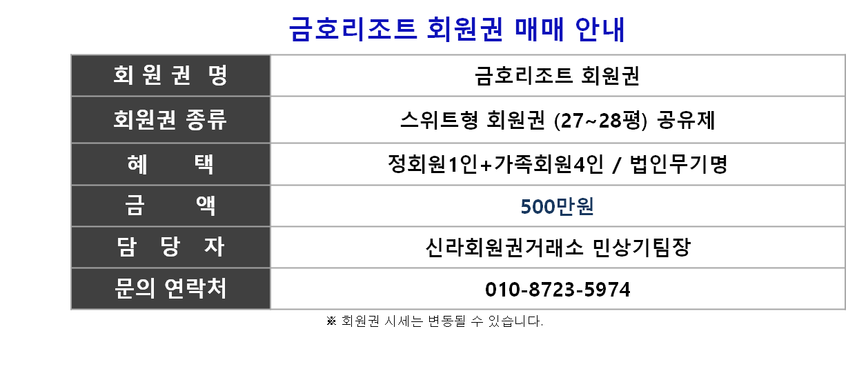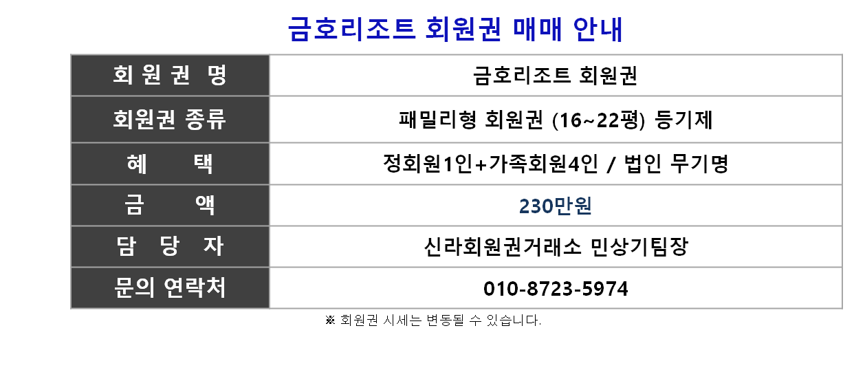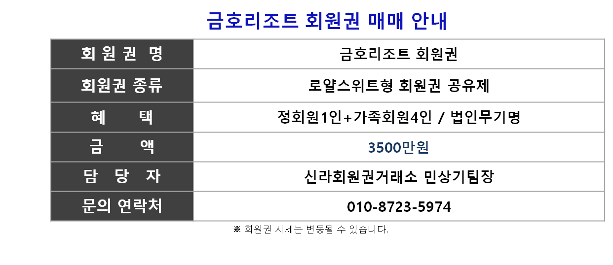 ☎ 금호리조트 회원권상담