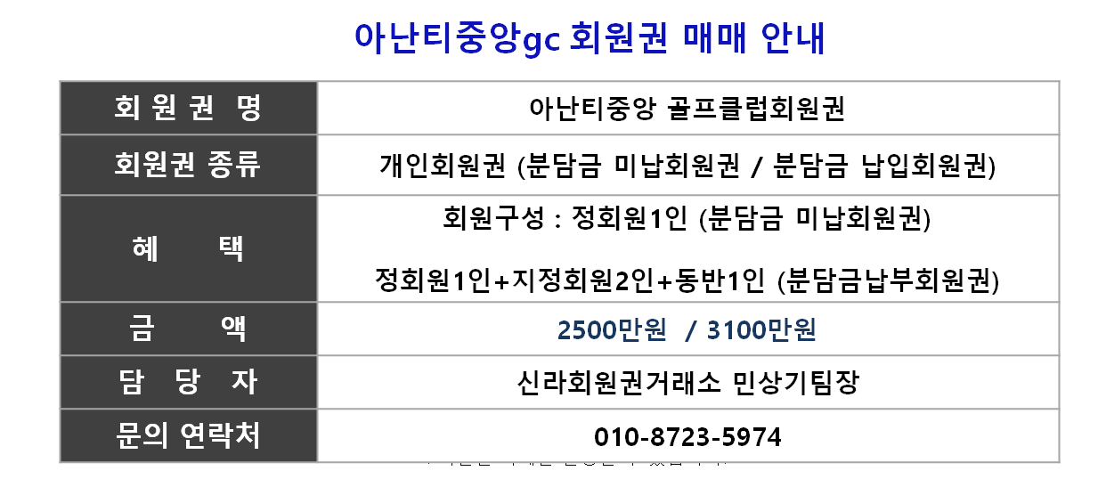 ◆ 아난티중앙cc 회원권종류