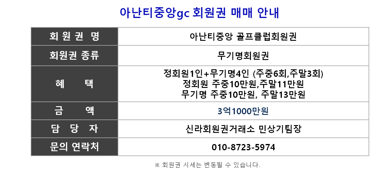 ☎ 아난티중앙cc 회원권상담