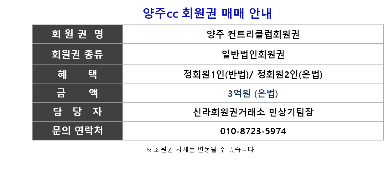 양주컨트리클럽회원권,양주cc회원권가격,양주cc회원권시세,양주cc회원권혜택,양주cc회원권금액,양주cc개인회원권,양주cc법인회원권, 양주cc회원권매매, 양주cc회원권매매,양주cc골프회원권,양주cc회원권매도,양주cc회원권매수, 양주cc회원권거래소, 양주cc가격,양주cc시세, 양주cc회원정보,양주cc골프장, 양주cc회원권매매가, 골프회원권거래소추천은 신라회원권거래소 민상기