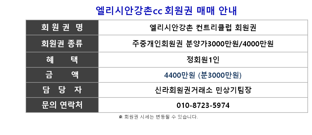 엘리시안강촌cc회원권가격,엘리시안강촌cc회원권시세,엘리시안강촌컨트리클럽회원권,엘리시안강촌cc회원권매매,엘리시안강촌골프회원권,엘리시안강촌cc회원권종류,엘리시안강촌cc회원권양도,엘리시안강촌cc회원권매수,엘리시안강촌cc요금,엘리시안강촌cc회원권정보,엘리시안강촌cc회원권거래소,엘리시안강촌cc주중회원권,엘리시안강촌cc특별회원권, 엘리시안강촌cc법인회원권,엘리시안강촌cc무기명회원권,골프회원권거래소추천은 신라회원권거래소 민상기