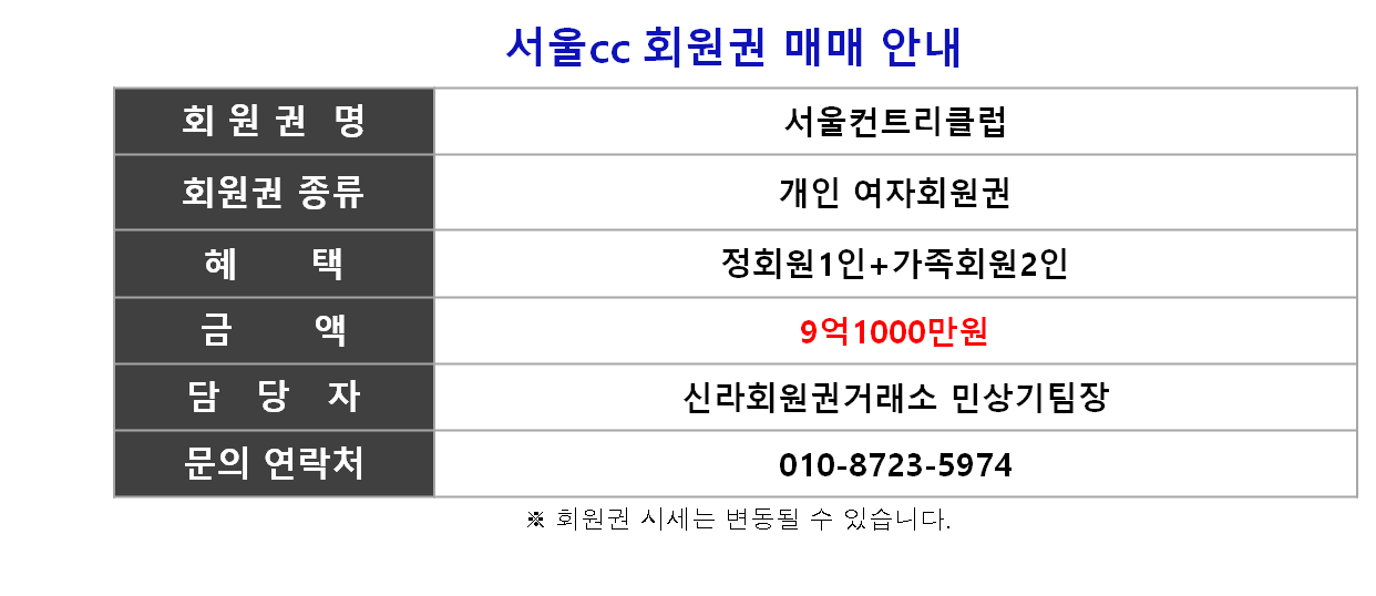 ◆ 회원권구입시 부대비용안내 (서울cc)