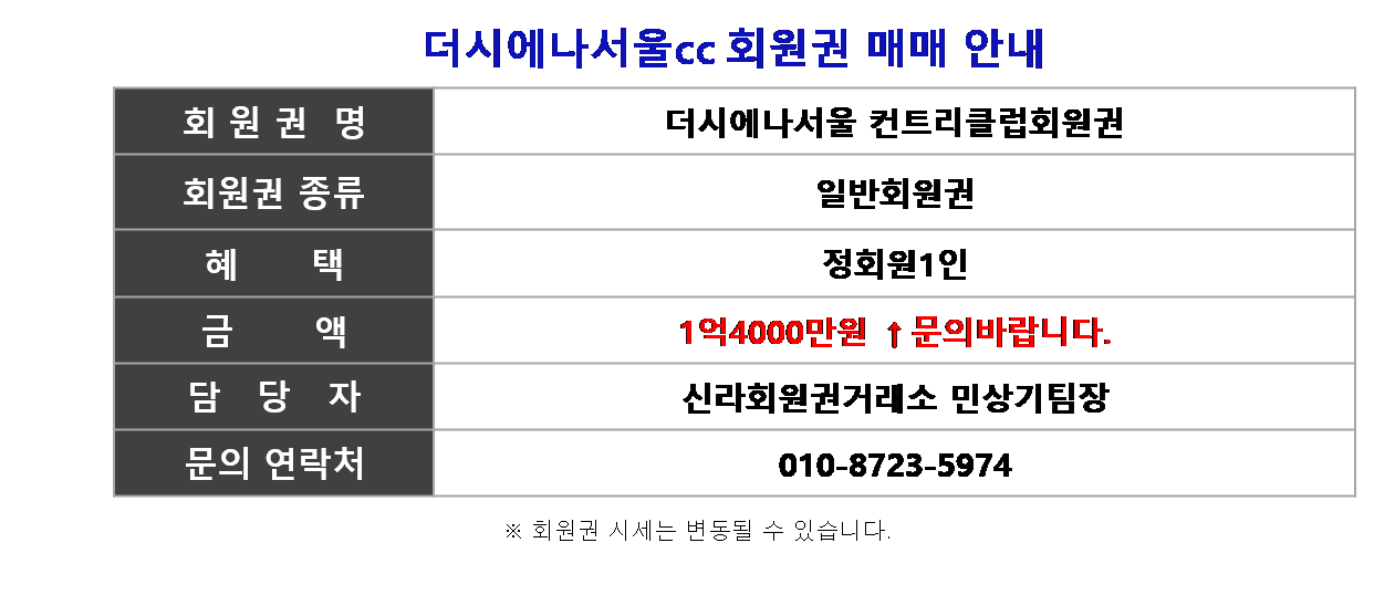 더시에나서울컨트리클럽회원권,중부cc회원권가격,중부cc회원권시세,더시에나서울cc주중회원권,중부cc주중회원권,더시에나서울cc무기명회원권,더시에나서울cc회원권혜택,더시에나서울cc회원권금액,더시에나서울골프회원권,더시에나서울cc요금,더시에나서울cc부킹,더시에나서울cc회원권거래,골프회원권거래소 추천은 신라회원권거래소, 골프회원권시세조회,더시에나서울cc가격,더시에나서울cc시세,더시에나서울cc법인회원권,더시에나서울cc회원권정보
