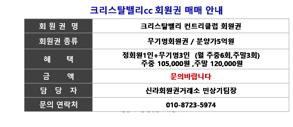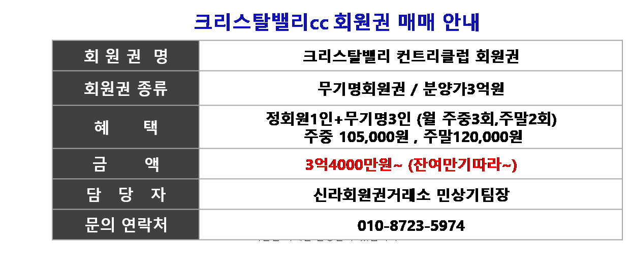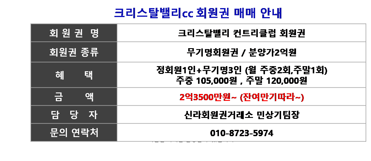 ☎ 크리스탈밸리cc회원권상담