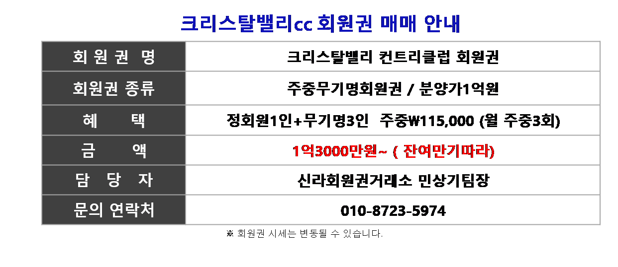 " 크리스탈밸리cc회원권 "